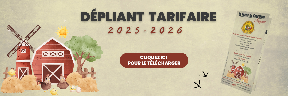 Fin 2019, nous avons ouvert notre boutique à la Ferme. En plus de nos produits (volailles, canard gras, foie gras, pâtés et rillettes, plats cuisinés, …), vous pouvez y trouver un large choix de produits locaux et régionaux.