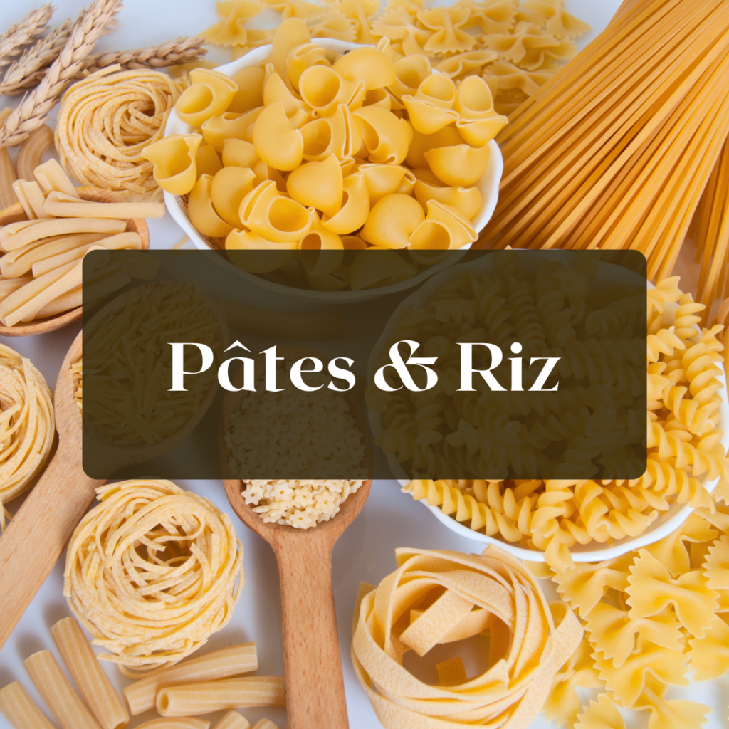 Pâtes sèches et fraîches, riz, quinoa, boulgour, gnocchis, …